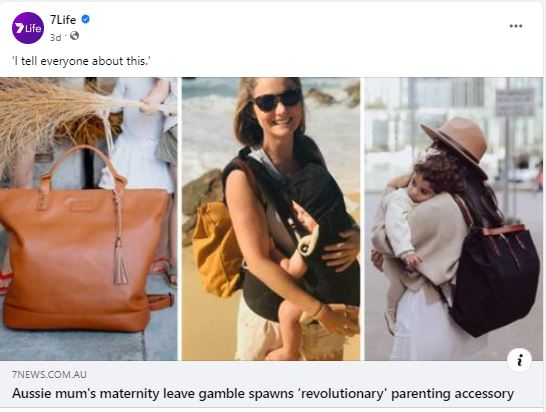 "Aussie mum’s maternity leave gamble spawns ‘revolutionary’ parenting accessory. - I tell everyone about this.’ Sophie Haslett, 7NEWS