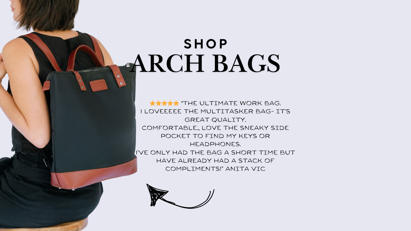 "I am using my Arch as a work bag - I wear it as a backpack for walking and on the bus, then as a shoulder bag when getting to work. It fits my laptop as well as all of my essentials. The versatility is great - I have had so many compliments already." Ava
